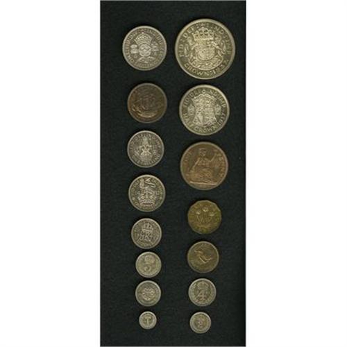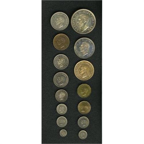 <B>George VI Proof set 1937,</B></I> S-PS16, 15 coins, Crown to Farthing, in Royal Mint purple plush case, nearly as issued, light toning.<BR><BR><b>Shipping:</b> Coins & Currency (<a target="_blank" href="http://www.heritageauctions.com/common/shipping.php">view shipping information</a>)