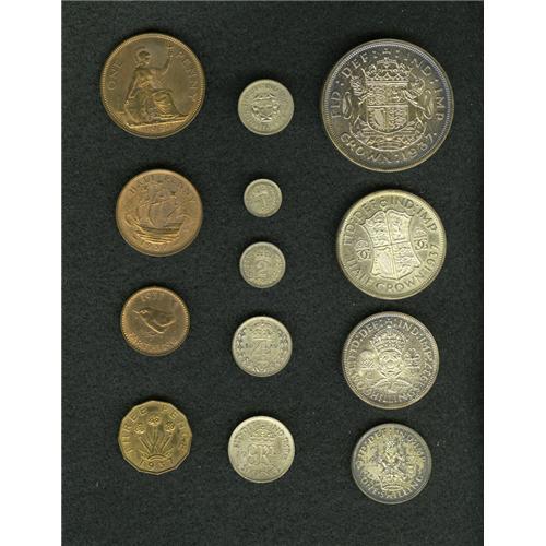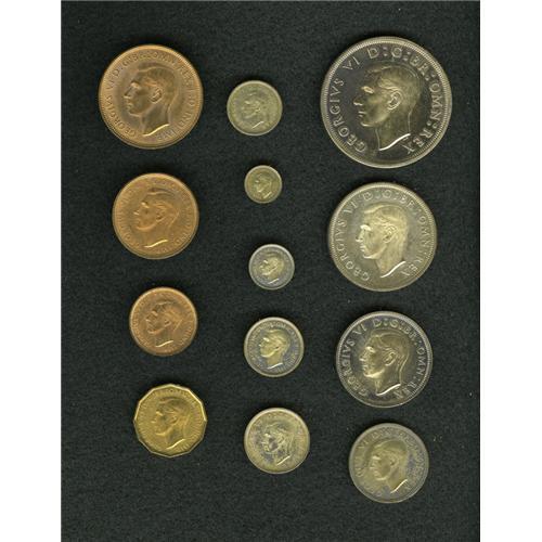 <B>George VI Proof set 1937,</B></I> S-PS16, 15 coins, Crown to Farthing, in Royal Mint purple plush case, a nicer set than the last, almost as issued, light toning.<BR><BR><b>Shipping:</b> Coins & Currency (<a target="_blank" href="http://www.heritageauctions.com/common/shipping.php">view shipping information</a>)