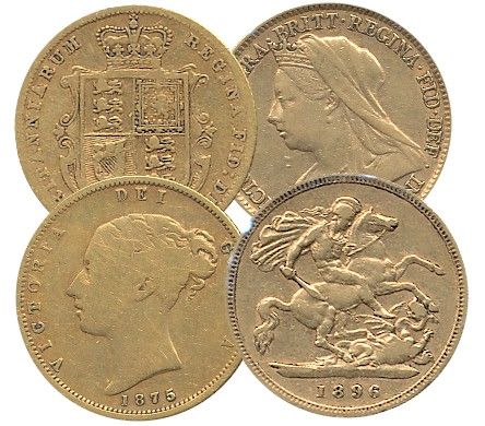 Great Britain; Gold 1875 and 1896 1/2 Sovereign. Lot of 2 coins VG to VF.