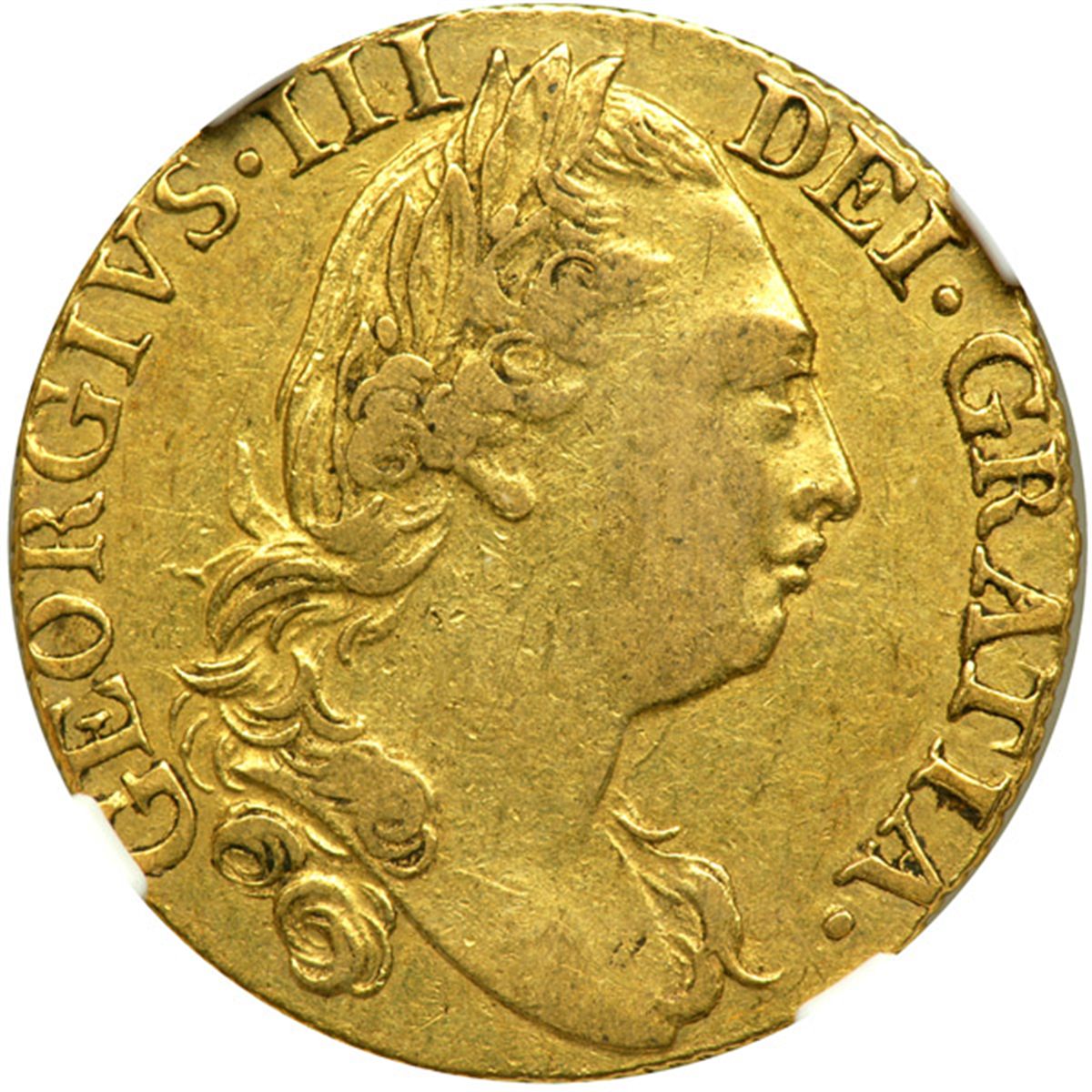 Great Britain. Guinea, 1778. S.3728; Fr-355; KM-604. George III. Fourth laureate head right. Reverse: Crowned shield of arms. NGC graded EF-45.