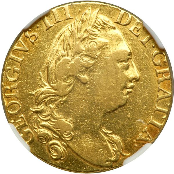 Great Britain. Guinea, 1784. S.3728; Fr-355; KM-604. George III. Fourth laureate head right. Reverse: Crowned shield. Moderate surface marks. Removed from jewelry. NGC graded Very Fine, Details.