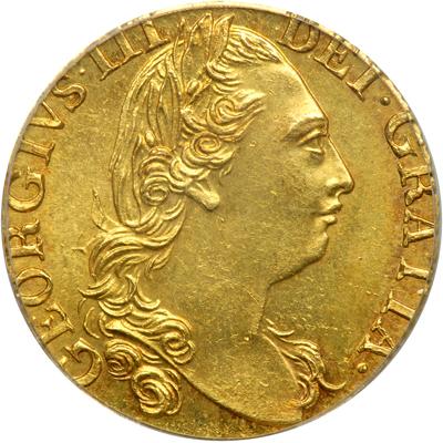 Great Britain. Guinea, 1785. S.3728; Fr-355; KM-604. George III. 4th Head. A late-date Rose guinea possessing superb luster and wonderful surfaces, as sharp as these come in strike. PCGS graded MS-64.