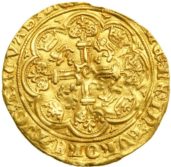 Great Britain. Half Nobel, ND. S.1494; Fr-90. Edward III, 1327-1377. Fourth coinage, Pre-treaty period with French title. Ruler in ship. Damaged, creased and clipped. NGC graded Very Fine, Details.