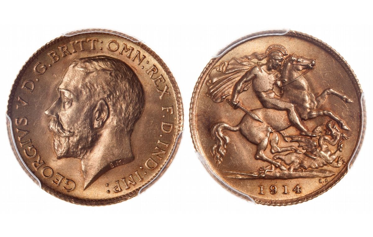 Great Britain. Half Sovereign. 1914. S-4006, Gold, 0.917, 3.994g, AGW 0.1177 oz. PCGS graded Gem Uncirculated-65.