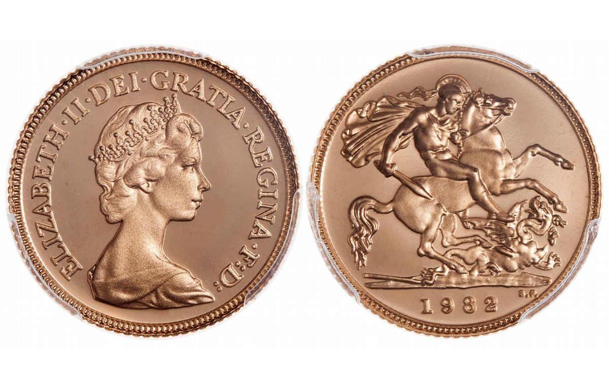 Great Britain. Half Sovereign. 1982. Gold, 0.917, 3.994g, AGW 0.1177 oz. PCGS graded Proof-69 Deep Cameo.