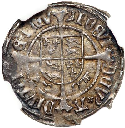 Great Britain. Halfgroat, ND. S.2262. Henry VII, 1485-1509. Profile issue. York mint. Archbishop Bainbridge. Obverse: Crowned portrait of King facing right. Reverse: Quartered shield, keys below. Struck on a large flan this coin has an excellent portrait and a pleasing dark patina. NGC graded AU-50 (In a new four pronged NGC holder).