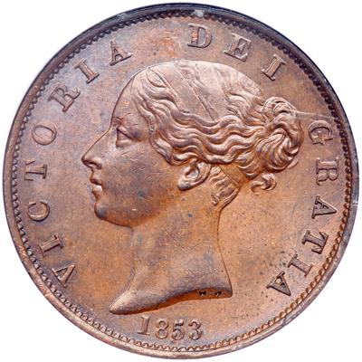 Great Britain. Halfpenny, 1853. S.3949; KM-726. Victoria. NGC graded MS-64 Brown.