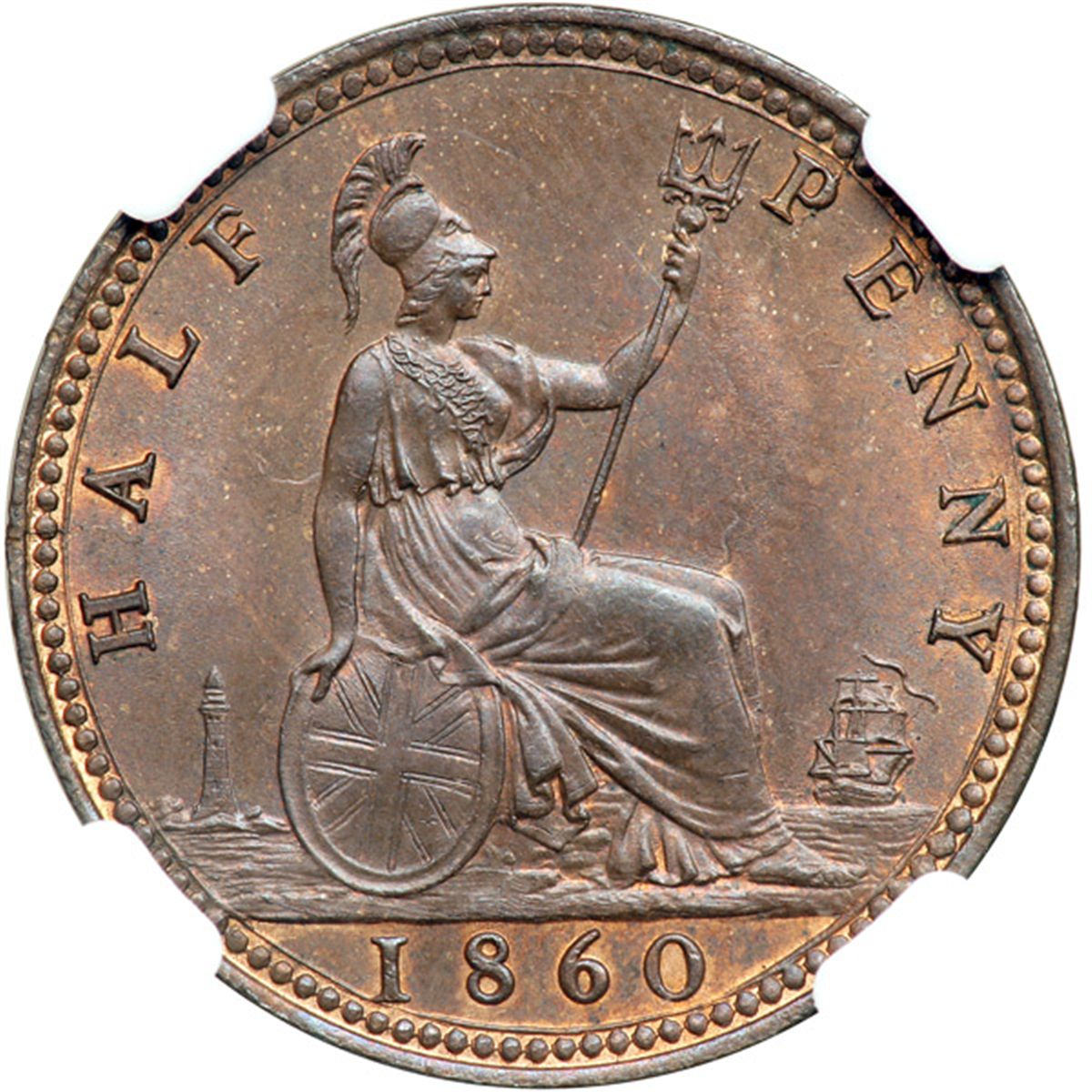 Great Britain. Halfpenny, 1860. NGC MS65