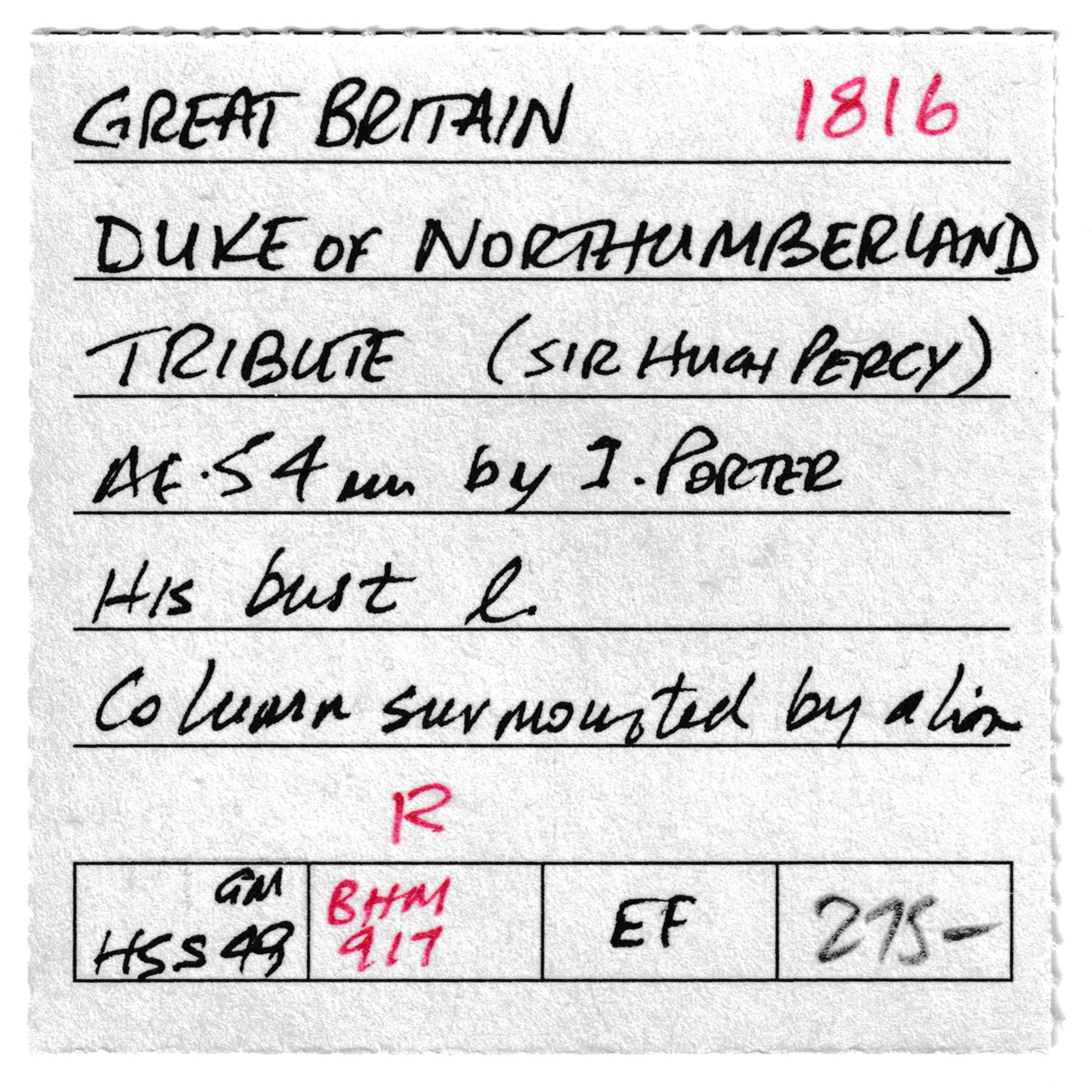 Great Britain, In Honor of Hugh Second Duke of Northumberland, Rev. Column erected by his grateful tenants. (54mm 65.43g) HSS 49, BHM# 917. A nice EF medal.