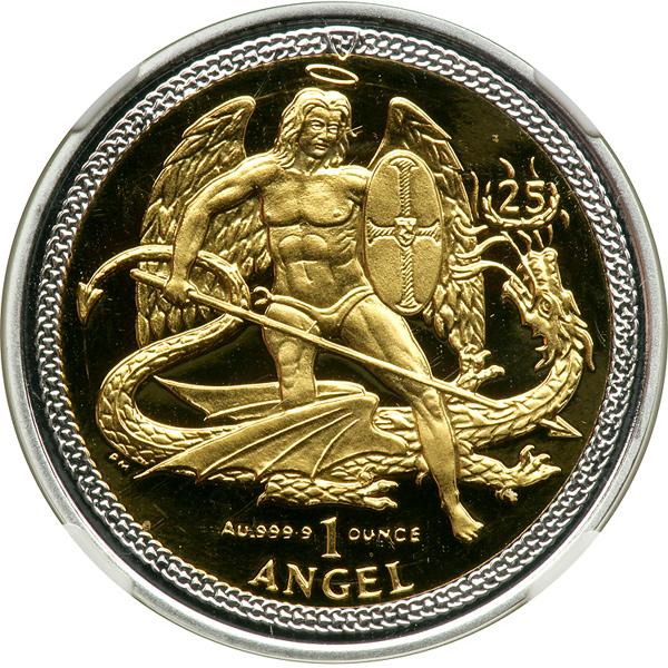 Great Britain - Isle of Man. Bi-Metallic Angel, 2009. 31.103 grams of gold and 9.39 grams of silver. Struck for the 25th Anniversary. NGC graded Proof 69 Ultra Cameo.