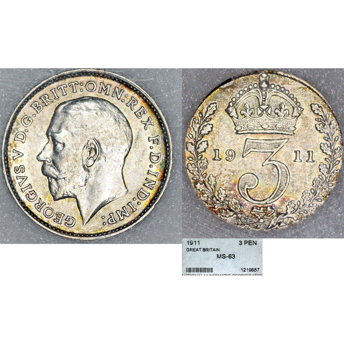 Grade NNC graded and certified as MS63,lightly toned.