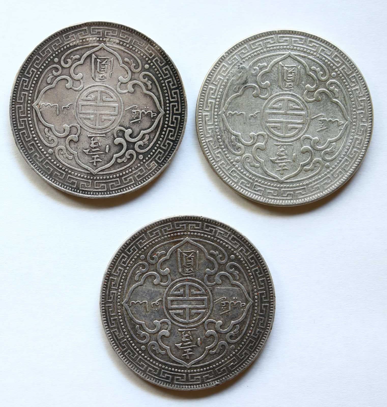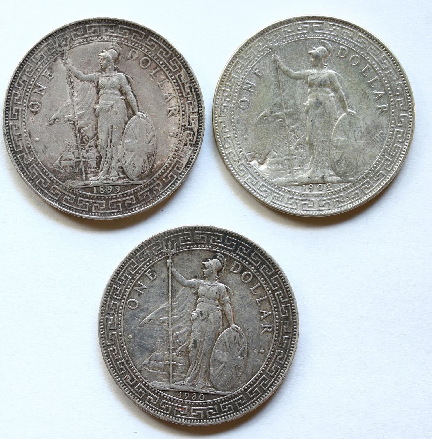 Great Britain; Lot of 3 British Trade Dollars, One with Chopmark. VF-EF.