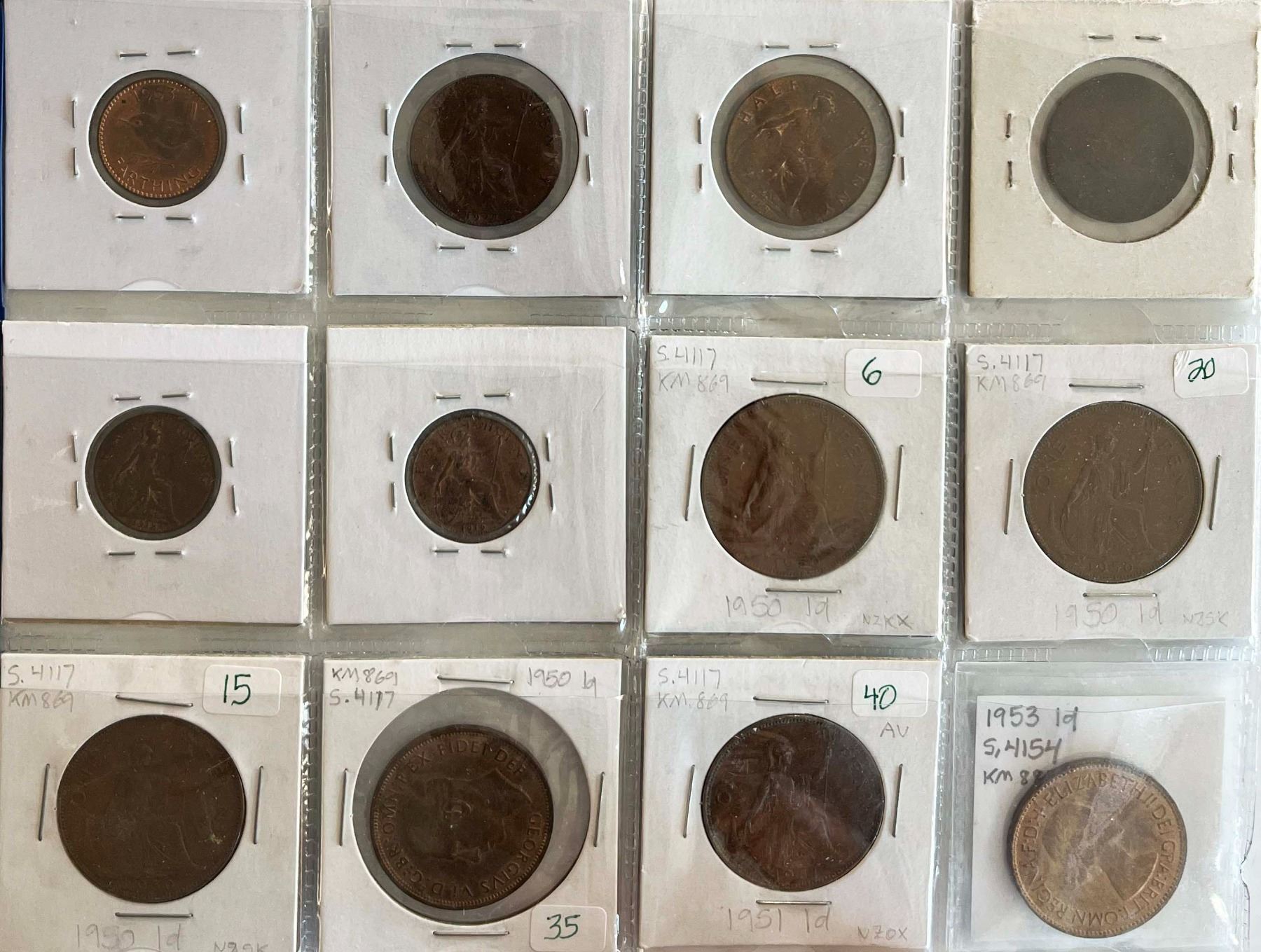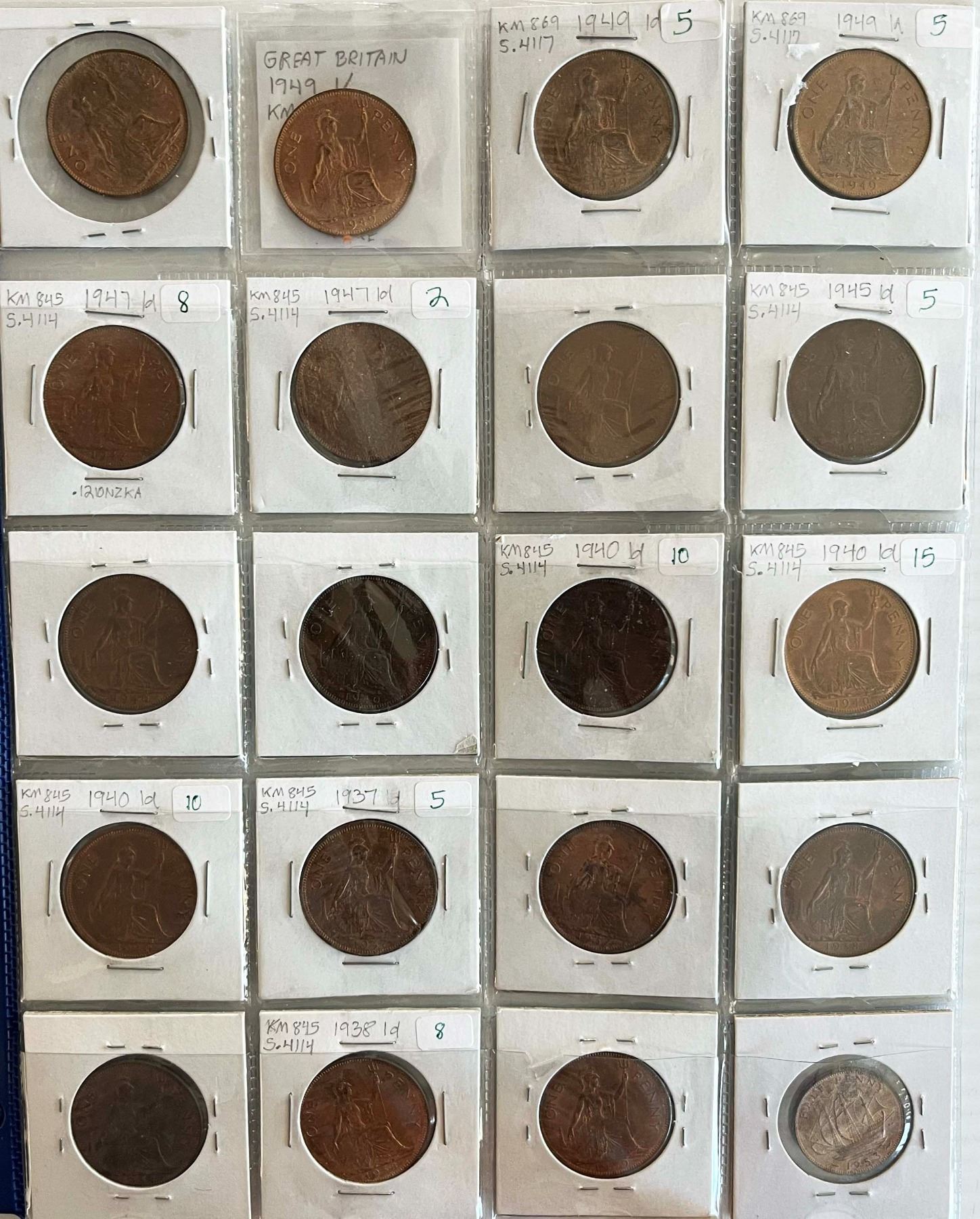 Great Britain; Lot of 32 Copper Pennies, Half Pennies and Farthings 1900's to 1940's on average.