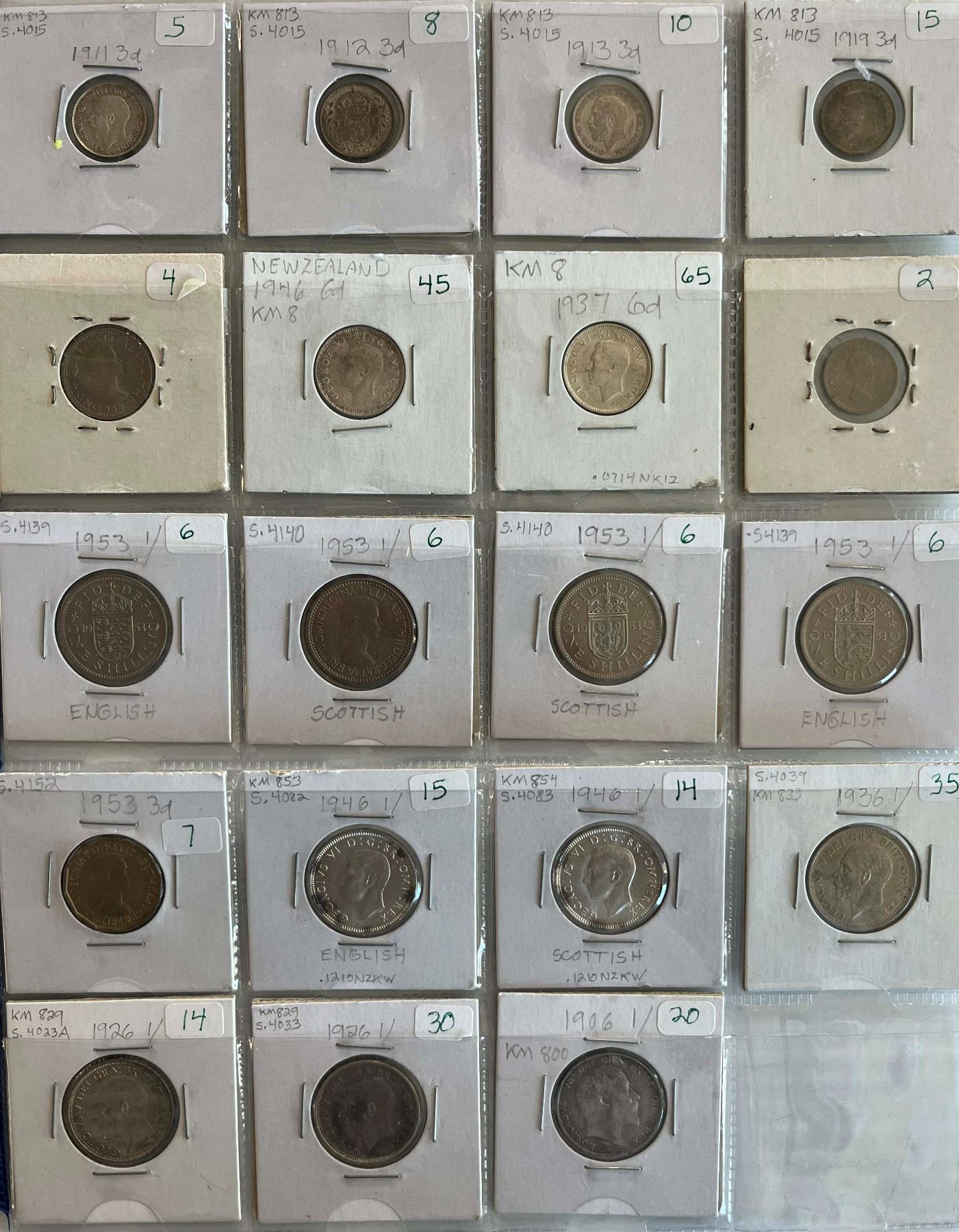 Great Britain; Lot of 39 Silver and nickel coinage includes mainly 3¢ to One Shillings.