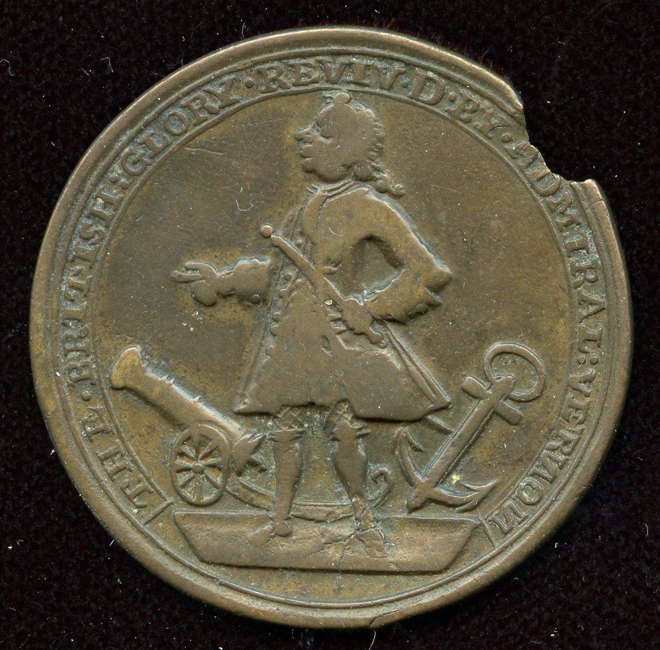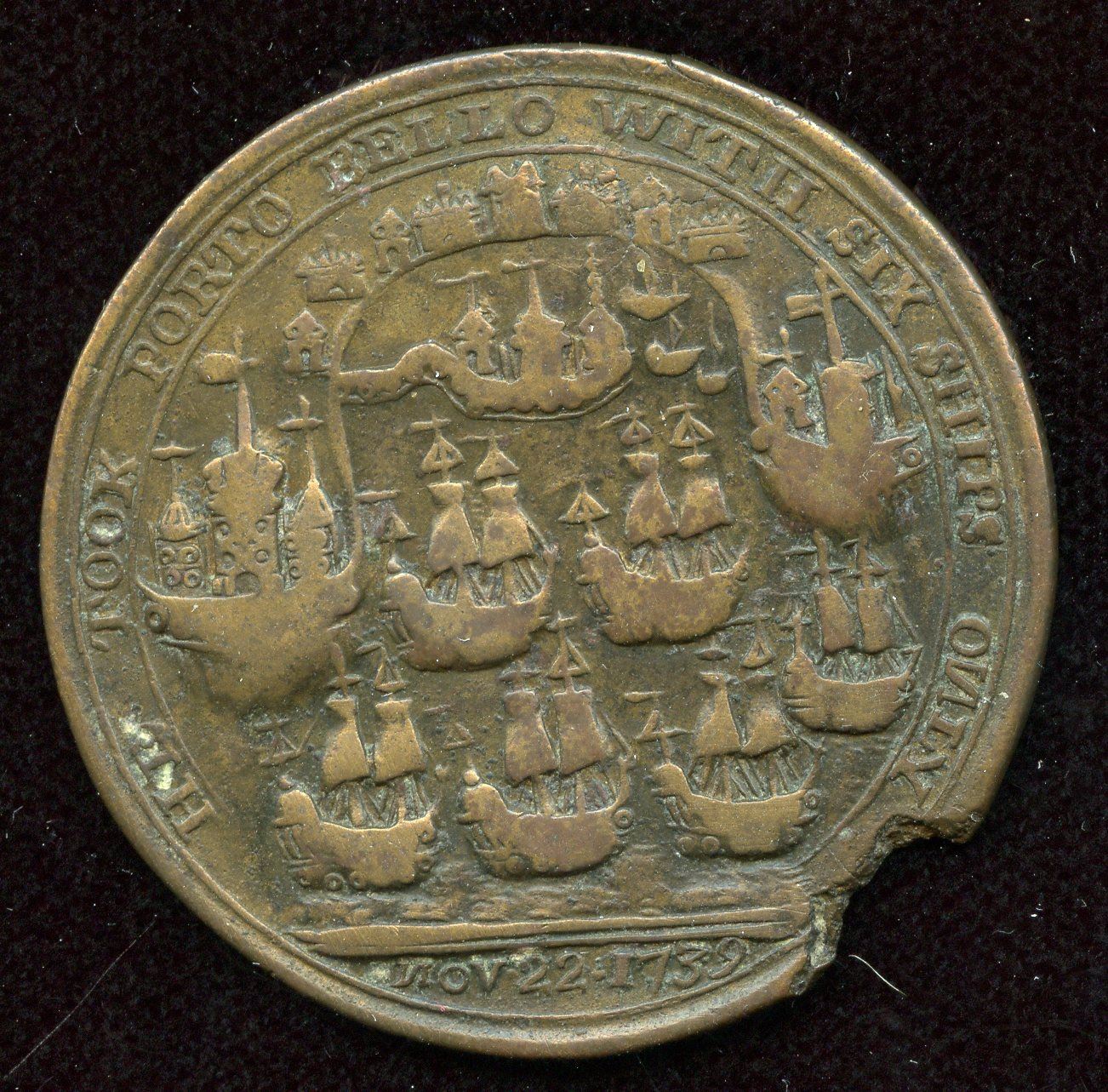 Admiral Vernon, 1739, Betts 224, copper, He Took Porto Bello with Six Ships Only, please note piece missing at 2 o'clock.