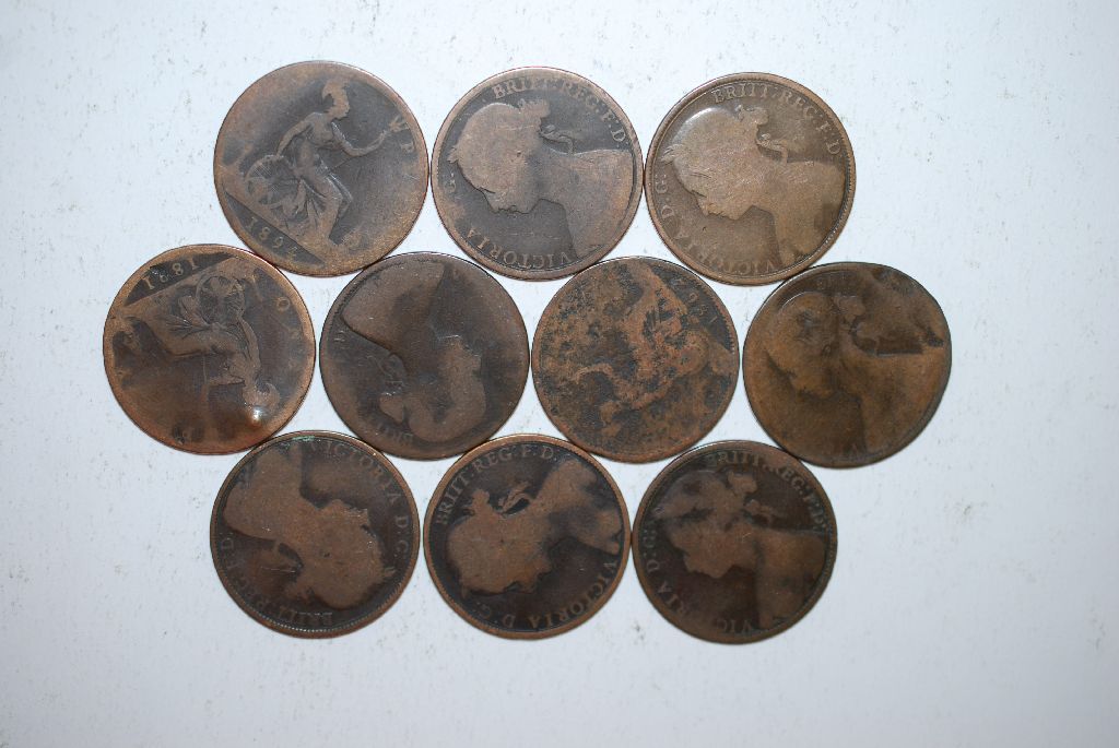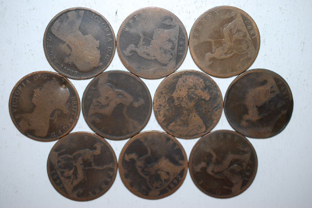 Great Britain One Penny Foreign Coin; Various Dates & Conditions; Lot of 10; EST. $10-20