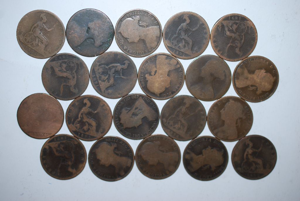 Great Britain One Penny Foreign Coin; Various Dates & Conditions; Lot of 20; EST. $25-30