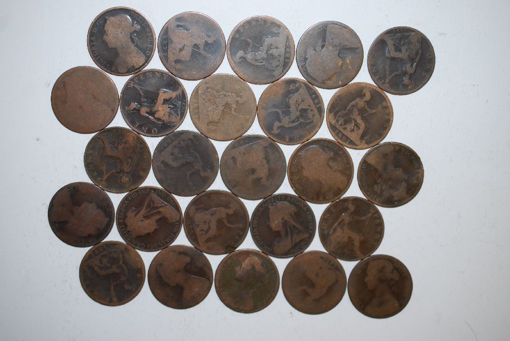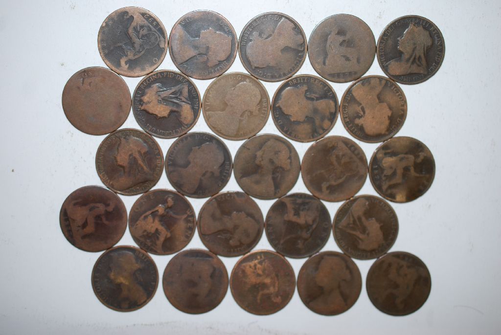 Great Britain One Penny Foreign Coin; Various Dates & Conditions; Lot of 25; EST. $10-15