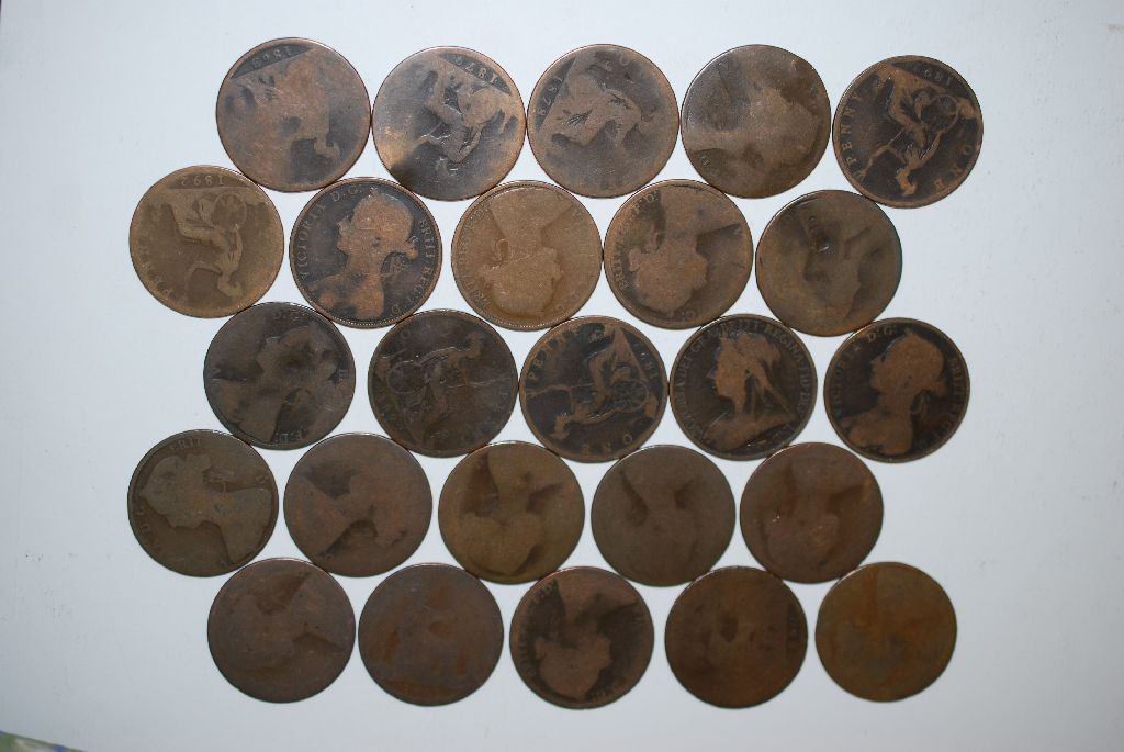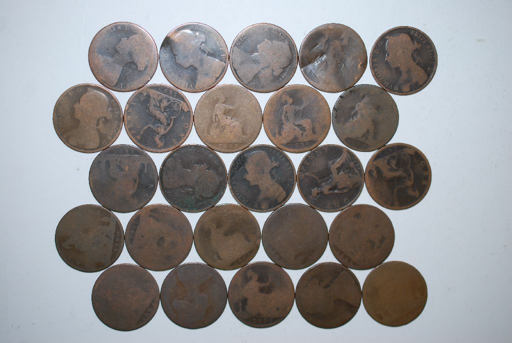 Great Britain One Penny Foreign Coin; Various Dates & Conditions; Lot of 25; EST. $15-25