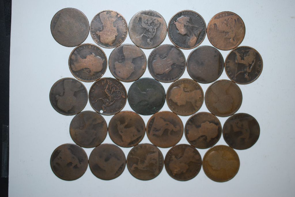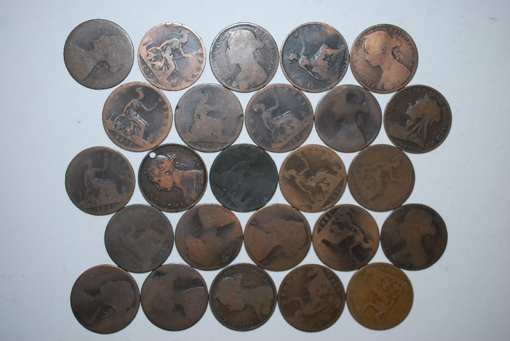 Great Britain One Penny Foreign Coin; Various Dates & Conditions; Lot of 25; EST. $15-25
