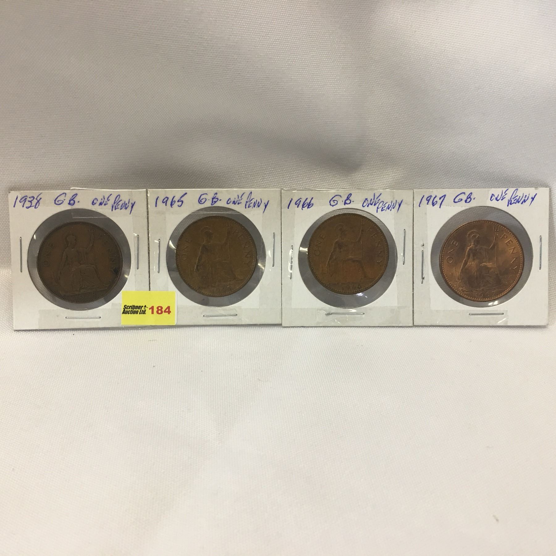 Great Britain One Penny - Set of 4: 1938; 1965; 1966; 1967