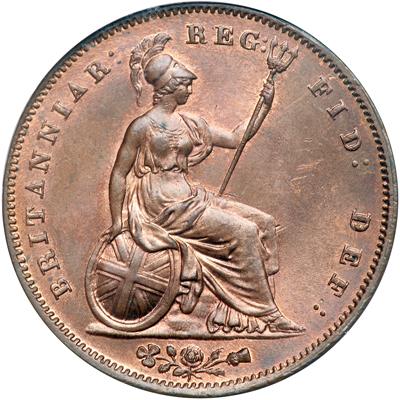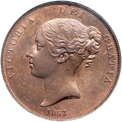 Great Britain. Penny, 1853-OT. S.3948; KM-739. Victoria. OT. DEF -: Nice surfaces and lustrous. NGC graded MS-64 Red & Brown.