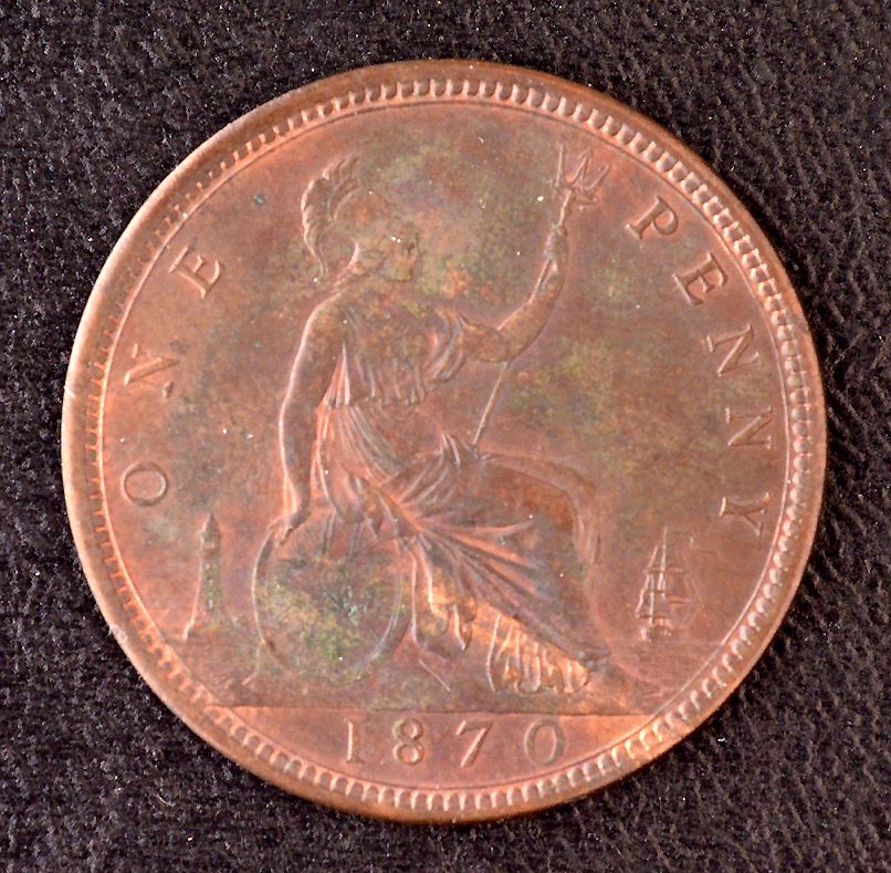 Great Britain, Penny, 1870, Unc, with lustre. Some reverse PVC. Still nice.