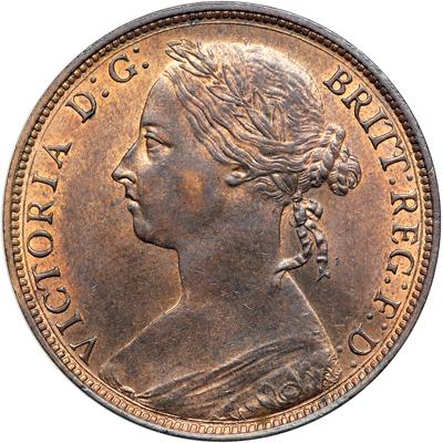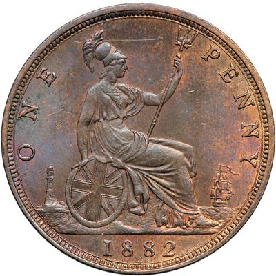 Great Britain. Penny, 1882-H. S.3955; KM-755. Victoria, 1837-1901. Faint contact hairline reverse scratch. Uncirculated Red and Brown.