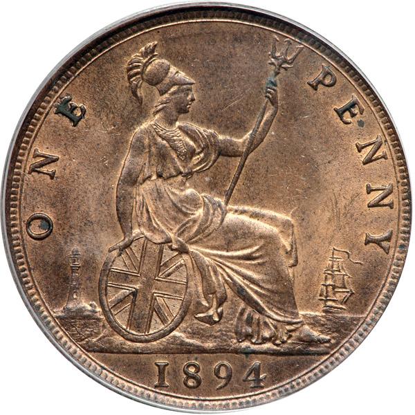 Great Britain. Penny, 1894. S.3954; KM-755. Victoria. Young laureate bust left. PCGS graded MS-64 Red & Brown.