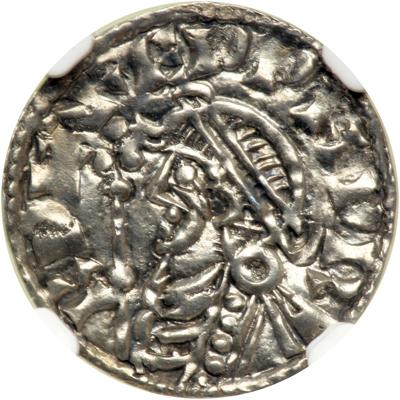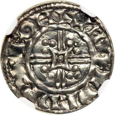 Great Britain. Penny, ND. S.1174. Edward The Confessor, 1042-1066. Trefoil Quadrilateral type. London Mint. +GOLDWINE ON LVND. Toned. In a new 4 prong NGC holder. NGC graded AU-50.