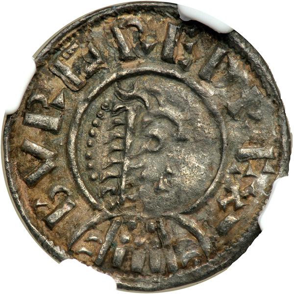 Great Britain. Penny, ND. S.941. Burgred, 852-874. Bust right. Reverse: Legend divided by two lines with a crook at each end. Environmental damage, corrosion. NGC graded Extremely Fine, Details.