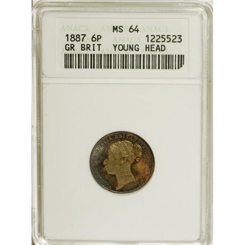<B>Pleasing Sixpence "type set":</B></I> 1887 Young Head, S-3912, MS64 ANACS; 1887 Jubilee Head, S-3929, MS65 ANACS; 1901 Old Head, S-3941, MS65 ANACS. Spot-on grading, dead accurate, by ANACS, plus the coins are beautifully toned. Worth a strong bid!<BR><BR><b>Shipping:</b> Coins & Currency (<a target="_blank" href="http://www.heritageauctions.com/common/shipping.php">view shipping information</a>)