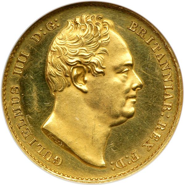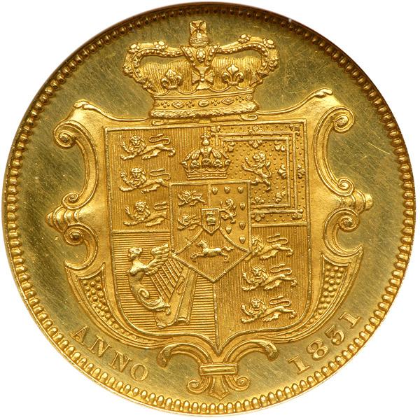 Great Britain. Proof Sovereign, 1831. S.3829; Fr-383a; KM-717; WR-261 (Rarity-3). William IV, 1830-1837. Head of King facing right. WW incuse on truncation. Reverse: Crowned ornate garnished shield. Date below. Plain edge. As issued in the 1831 Proof set. A rare sovereign from one of the shorter reigns in British history. In the last few years all British Sovereigns of the 19th century have been eagerly bought up by collectors, leading to a substantial price rise. NGC graded Proof 60.