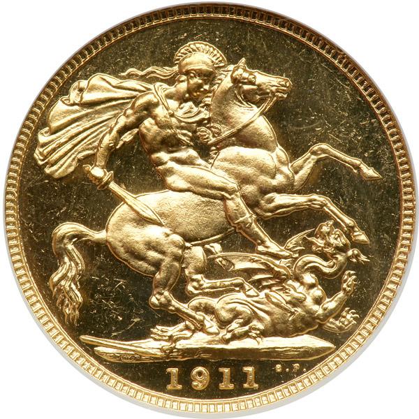 Great Britain. Proof Sovereign, 1911. S.3996; Fr-404a; KM-820. George V. Head left. Reverse: St. George. From the Coronation proof set of that year. NGC graded Proof 63.