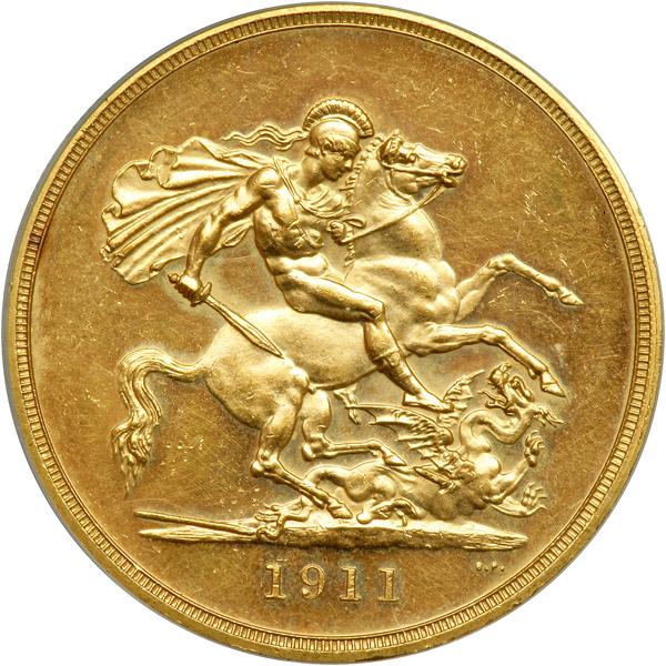 Great Britain. Proof gold 5 Pounds, 1911. ANACS PF61