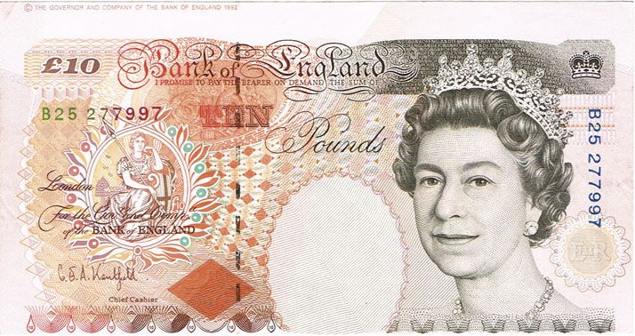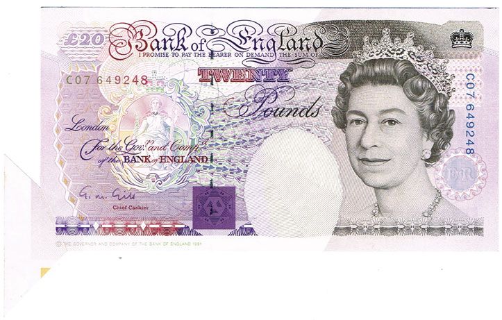 Twenty Pounds Faraday signed Gill with extra piece at lower left, Ten pounds Nightingale signed Somerset miscut at top and bottom, and Dickens signed Kentfield, copyright notice at top. Very fine to extremely fine (3)