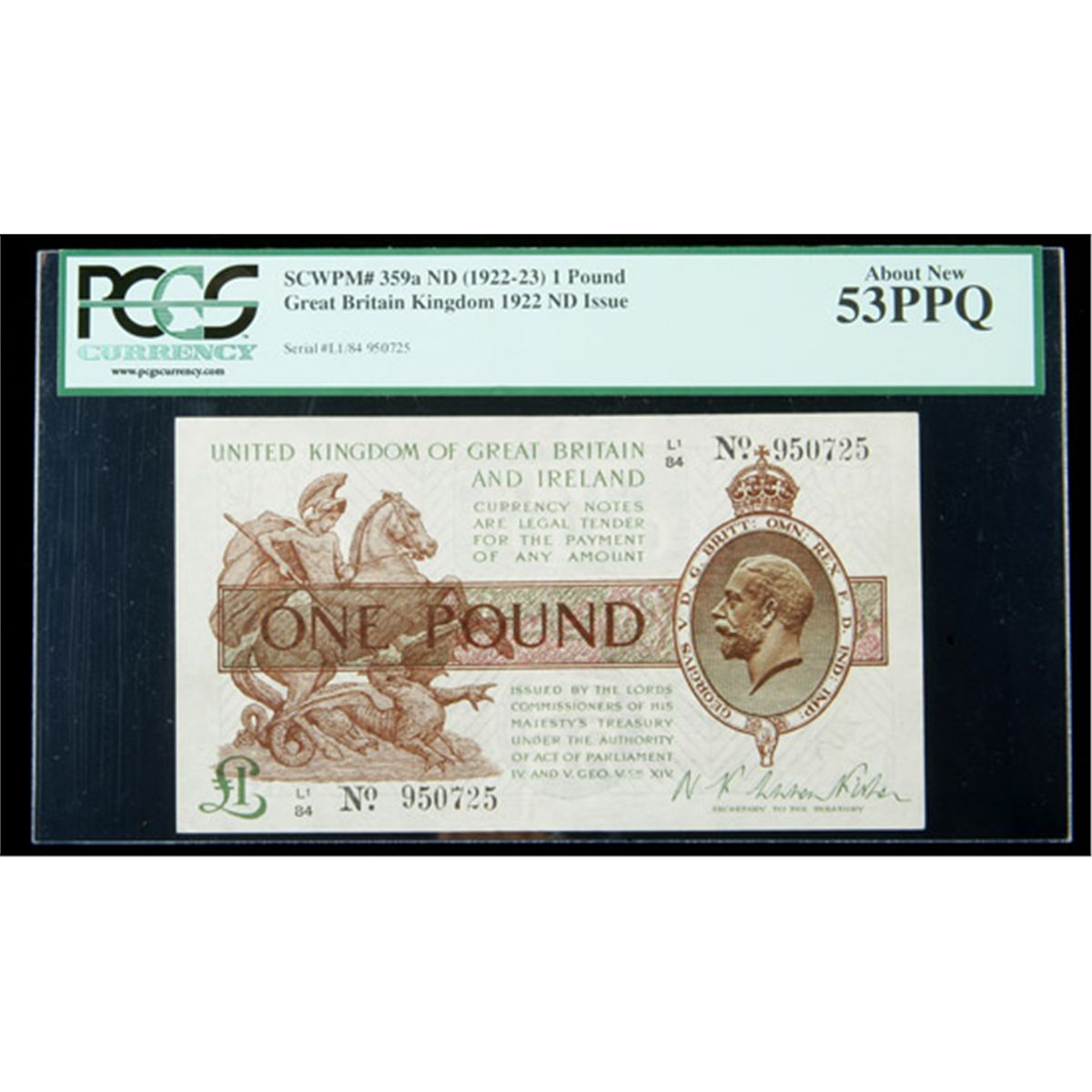 Great Britain SCWPM# 359a, ND (1922-23) 1 Pound. PCGS A