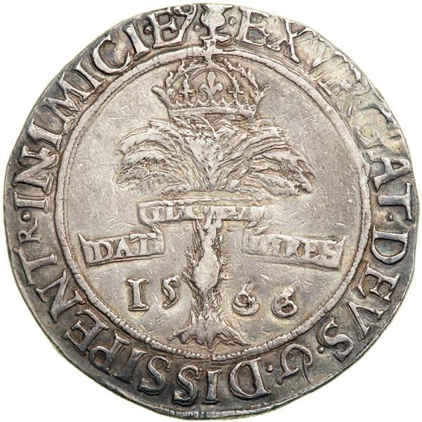 Great Britain - Scotland. Ryal, 1566. Dav-8461; S-5425. Mary-1542-1567. Fourth period, Mary and Henry Darnley (1565-1567). Crowned arms between thistles. Reverse: Tortoise climbing crowned palm tree. Attractive example with pleasing old toning. NGC graded VF-30.