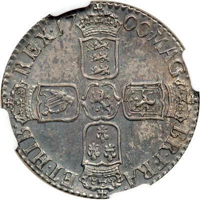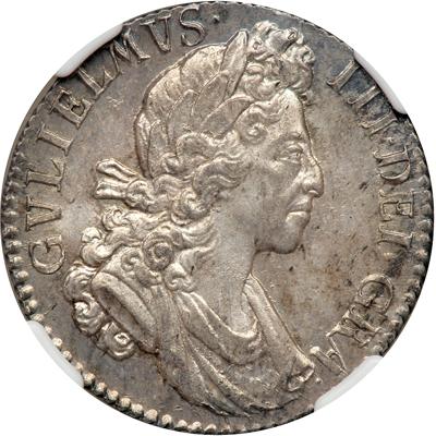 Great Britain. Shilling, 1700. S.3516; ESC-1121. William III. Fifth bust. Lustrous and lightly toned. In a new 4 prong NGC holder. NGC graded MS-61.