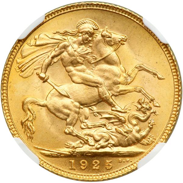 Great Britain. Sovereign, 1925. S.3996; Fr-404; KM-820. Weight 0.2355. George V. Very choice example. NGC graded MS-66.