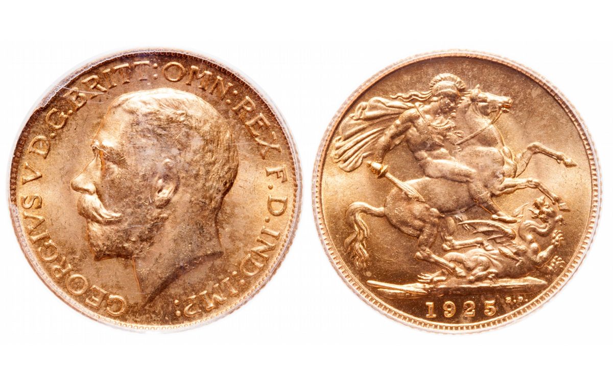 Great Britain. Sovereign. 1925. Gold, 0.917, 0.79881g, AGW 0.2354 oz. PCGS graded Gem Uncirculated-65.