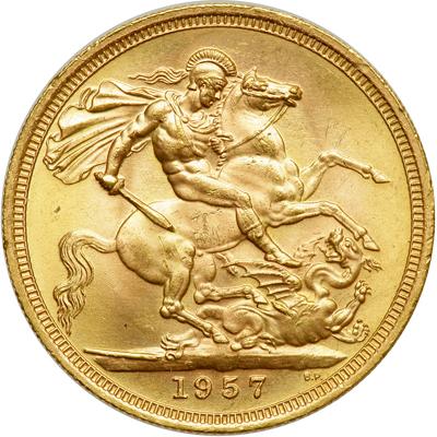 Great Britain. Sovereign, 1957. KM-908; Fr-417. Elizabeth II. Uncirculated.