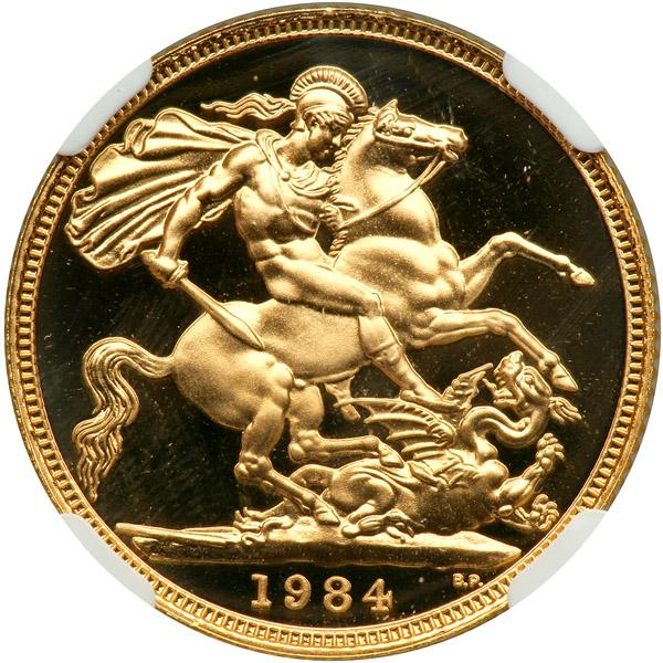 Great Britain. Sovereign, 1984. S.4204; Fr-418; KM-919. Weight 0.2355 ounce. Elizabeth II. Mature bust right. Reverse: St. George. NGC graded Proof 69 Ultra Cameo.