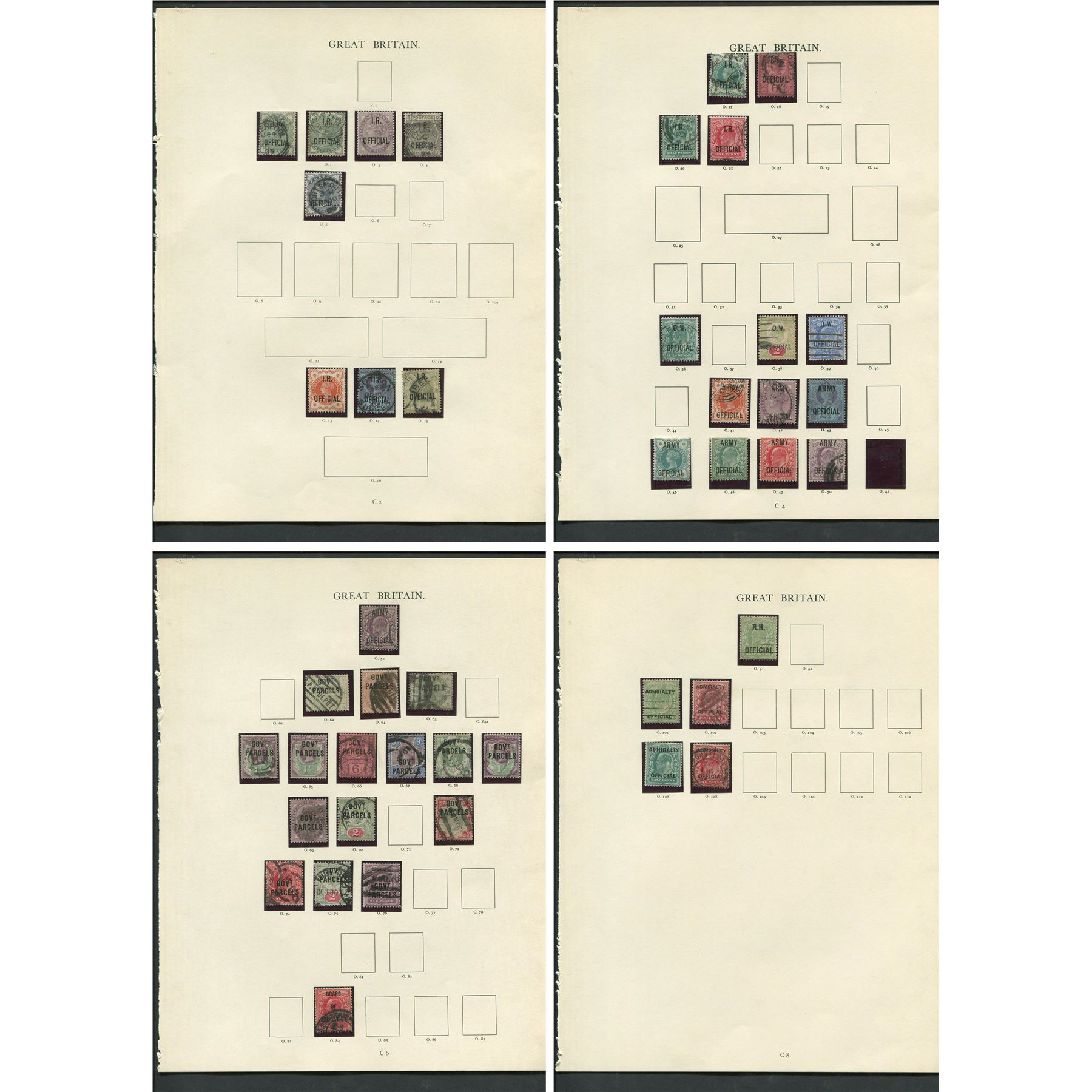 Great Britain specialized stamp collection. This collection contains 44- I.R. Official, Army Official, Government Parcels, Board of Education, R.H. Official, and Admiralty Official stamps from the Victoria and Edward period.