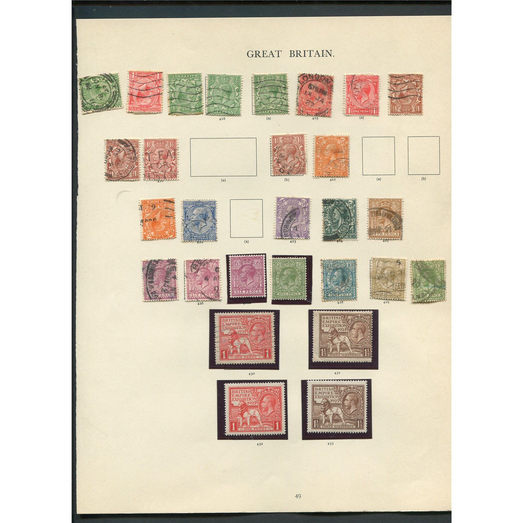 Great Britain stamp collection. This collection contains over 200 mint and cancelled, from the George V and Edward VII eras. Please see photos. Total S/C value = $1,400.
