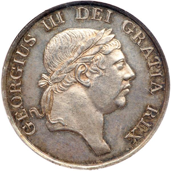 Great Britain. Three Shillings silver Bank Token, 1814. S.3770; KM-Tn5. George III. Laureate head. Light silvery gold toning. NGC graded MS-61.