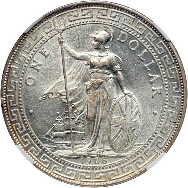Great Britain. Trade Dollar, 1908-B. NGC MS62