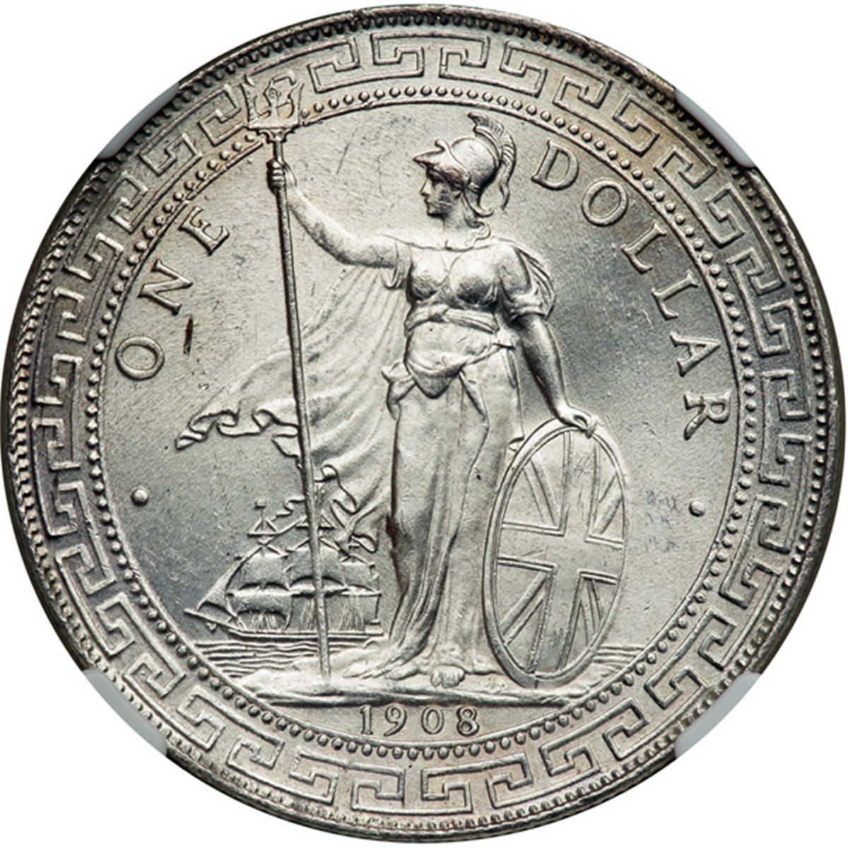 Great Britain. Trade Dollar, 1908-B. NGC MS62