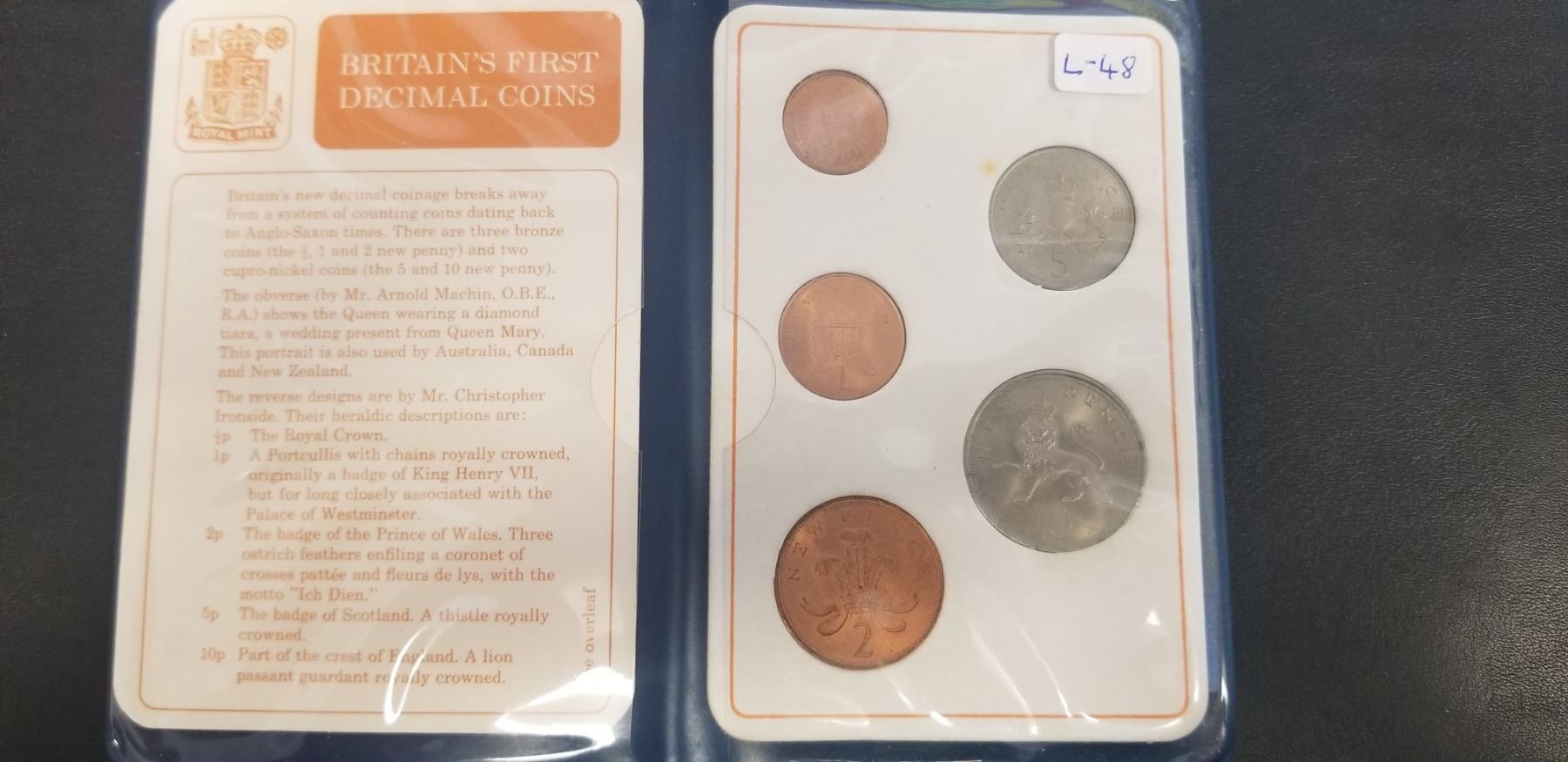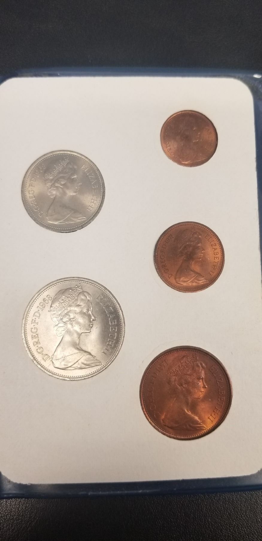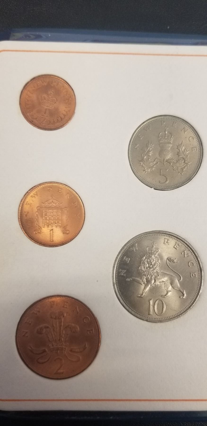 Great Britain/UK 1971 - Britain's First Decimal Coins - decimal Day 1/2p, 1p, 2p, 5p, 10p