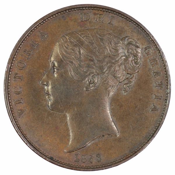 Great Britain Victoria 1853 Penny 'OT DEF_:' , Uncirculated (Scratch on Reverse)
